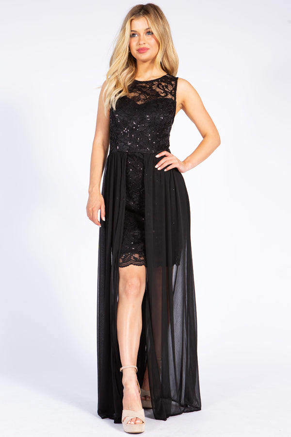 Short, Lace / Chiffon Dress with hi-low hem
